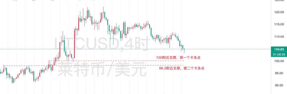 第二:4小时,随机指标死叉,震荡向下,偏空信号;形态上,阶梯慢牛阴跌为主,暂时无强势的拉升,无强势的延续性回升;整体偏向持续震荡阴跌;下面支撑位置99.8和98.2的支撑位置;