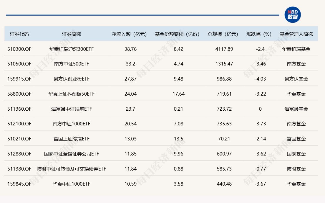 ETF规模速报 科创50ETF净流入超3亿元,中证1000ETF、中证500ETF净流出超12亿元